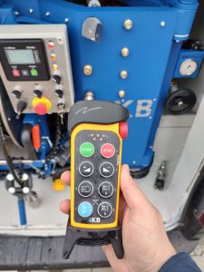 Okrem toho je naklápanie oboch pracovných bubnov podporované namiesto ťažko ovládateľnými zaisťovacími skrutkami hydraulickým valcom, ktorý zaistí bubny v ľubovoľnej polohe, ktorú si zvolíte. Systém je navyše štandardne vybavený robustným diaľkovým ovládaním, aby umožňoval bezpečnú obsluhu jednou osobou aj vo väčšej vzdialenosti od stroja.