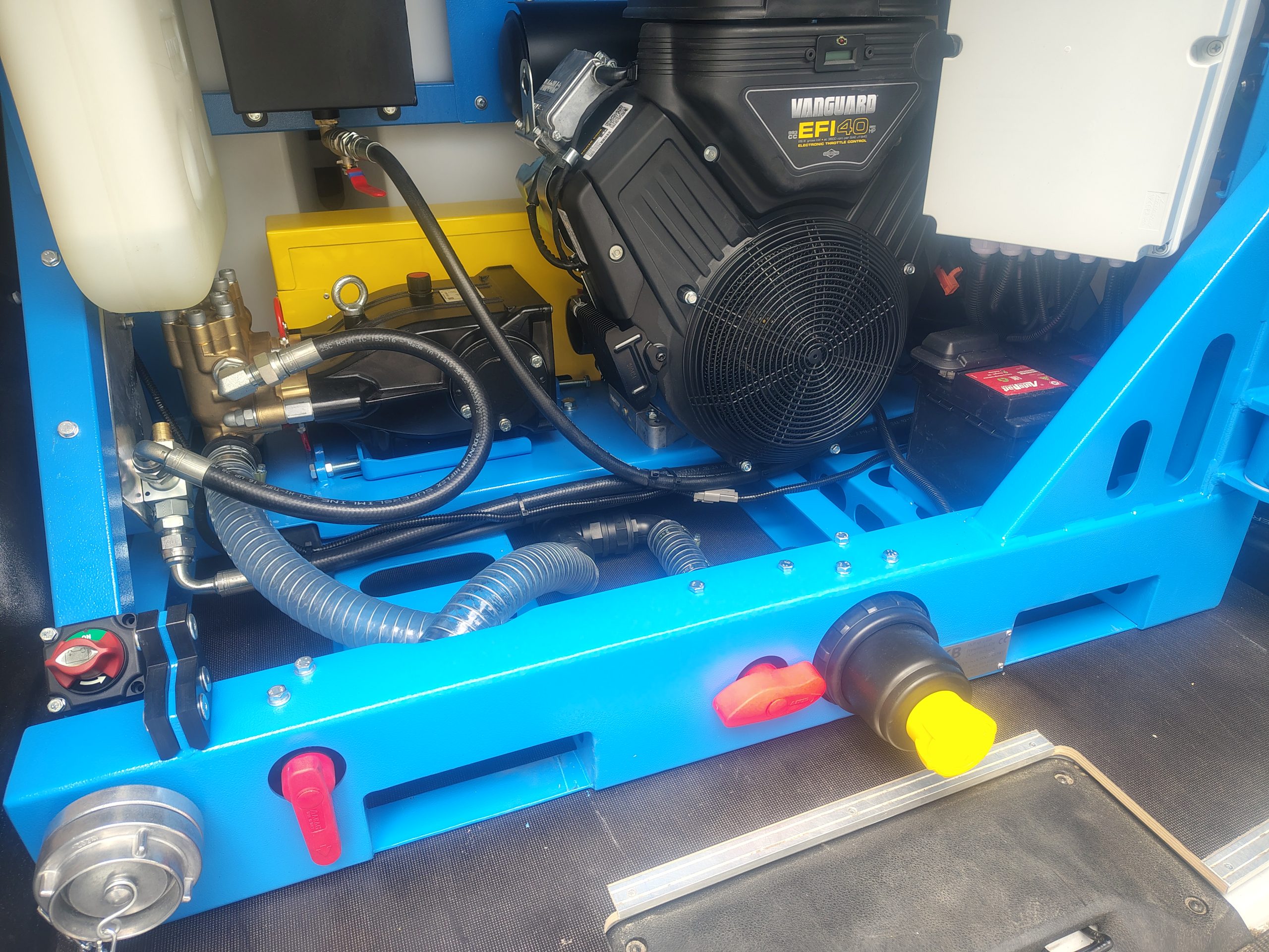 Vysokotlakové zariadenie TAJFUN disponuje najvýkonnejším 40 koňovým benzínovým agregátom s elektrickým bez-kľúčovým štartovaním značky B&S, vďaka ktorému dosahuje prietok až 80 litrov/minúta pri max. tlaku 150 barov. S touto čistiacou silou si hravo poradí pri čistení potrubí až do priemeru DN400!